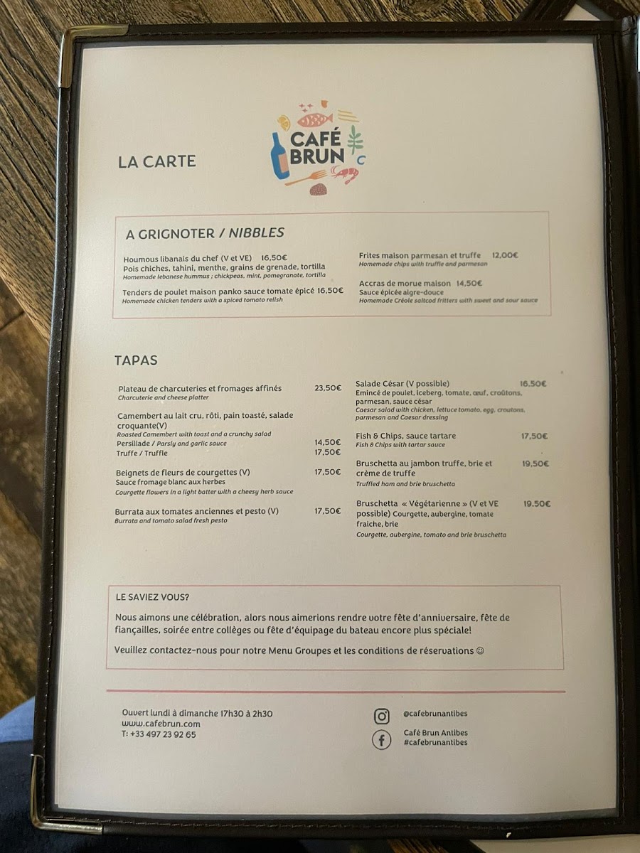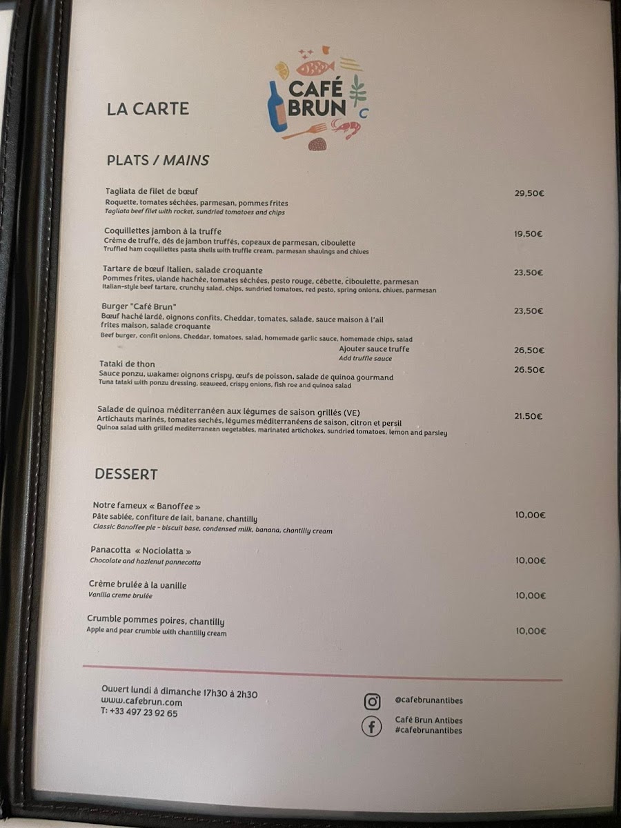 Welcome to Le Cafe Brun, the culinary gem nestled in the heart of Antibes at 8 Rue Aubernon. This charming eatery captures the essence of French dining, offering an array of delectable dishes perfect for lunch or dinner.